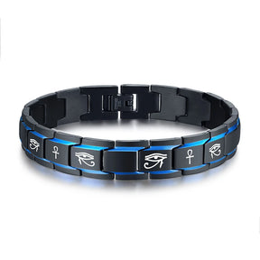 Ancient Egypt Bracelet - Stainless Steel Black & Blue Horus Eye