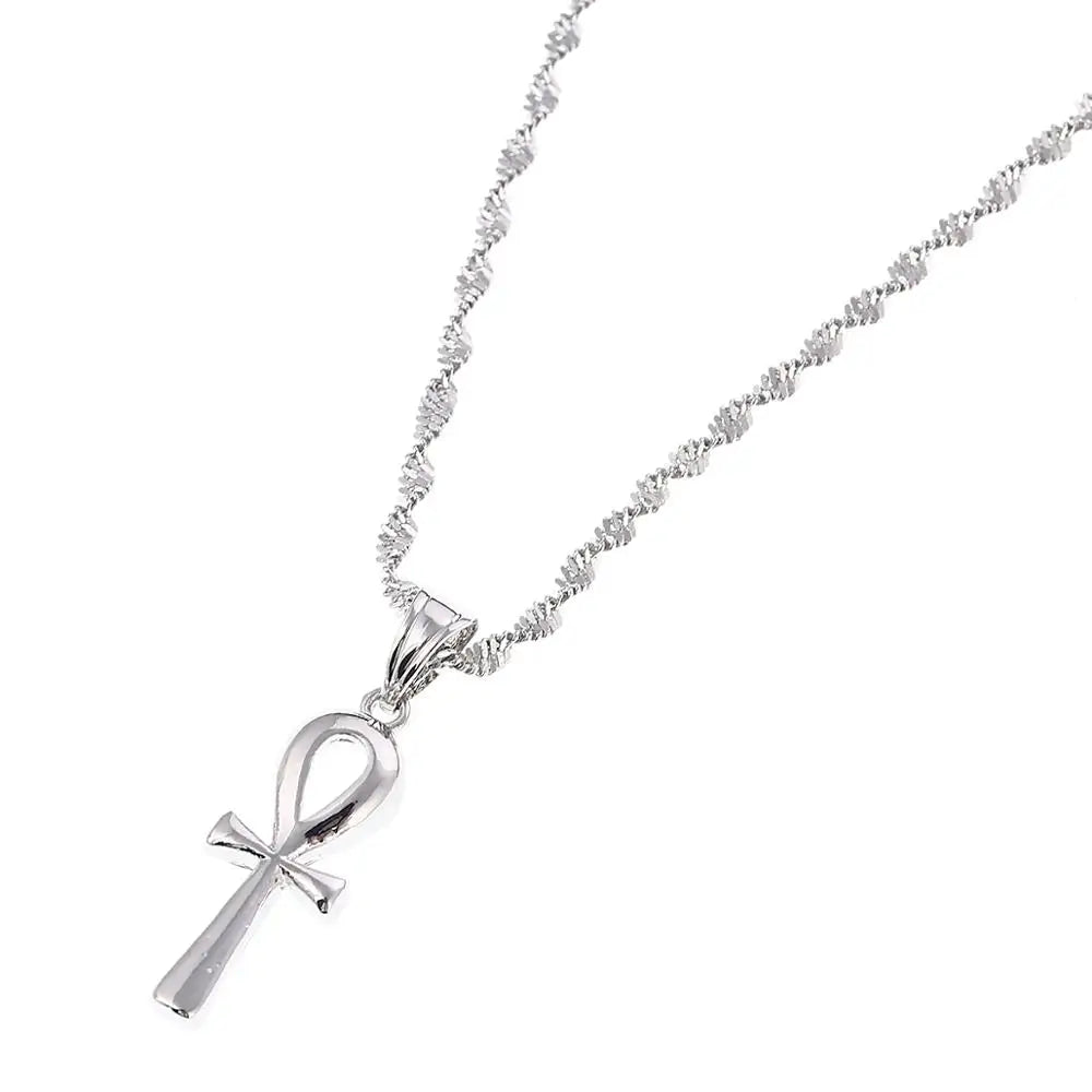 Embrace the timeless allure of ancient Egypt with our Silver Egyptian Ankh Cross Jewelry Set. Meticulously crafted, this set features an exquisite Egyptian Ankh Cross Pendant accompanied by complementing accessories. The sleek silver color accentuates the elegant design, paying homage to the symbol of eternal life and vitality.