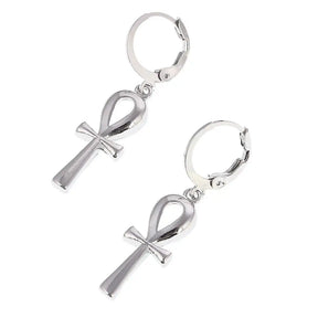 Ancient Egypt Necklace - With Silver Ankh Cross Earrings Set