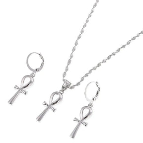 Ancient Egypt Jewelry Set - Silver Color Ankh Cross - Bricks Masons