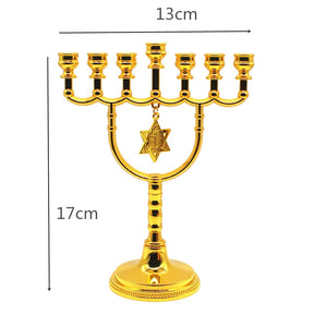 Enhance your Hanukkah celebrations with the Ancient Israel Candle Holder, a meticulously crafted Menorah designed to commemorate the Festival of Lights. Constructed from durable zinc alloy and finished with an opulent gold plating, this exquisite candle holder exudes elegance and sophistication. Its intricate design features traditional motifs and symbols, including the iconic Menorah shape with branches for each of the seven candles. Whether displayed as a centerpiece during Hanukkah festivities or as a cherished heirloom passed down through generations, this Menorah captures the essence of Jewish heritage and tradition, adding a touch of beauty and reverence to your home.