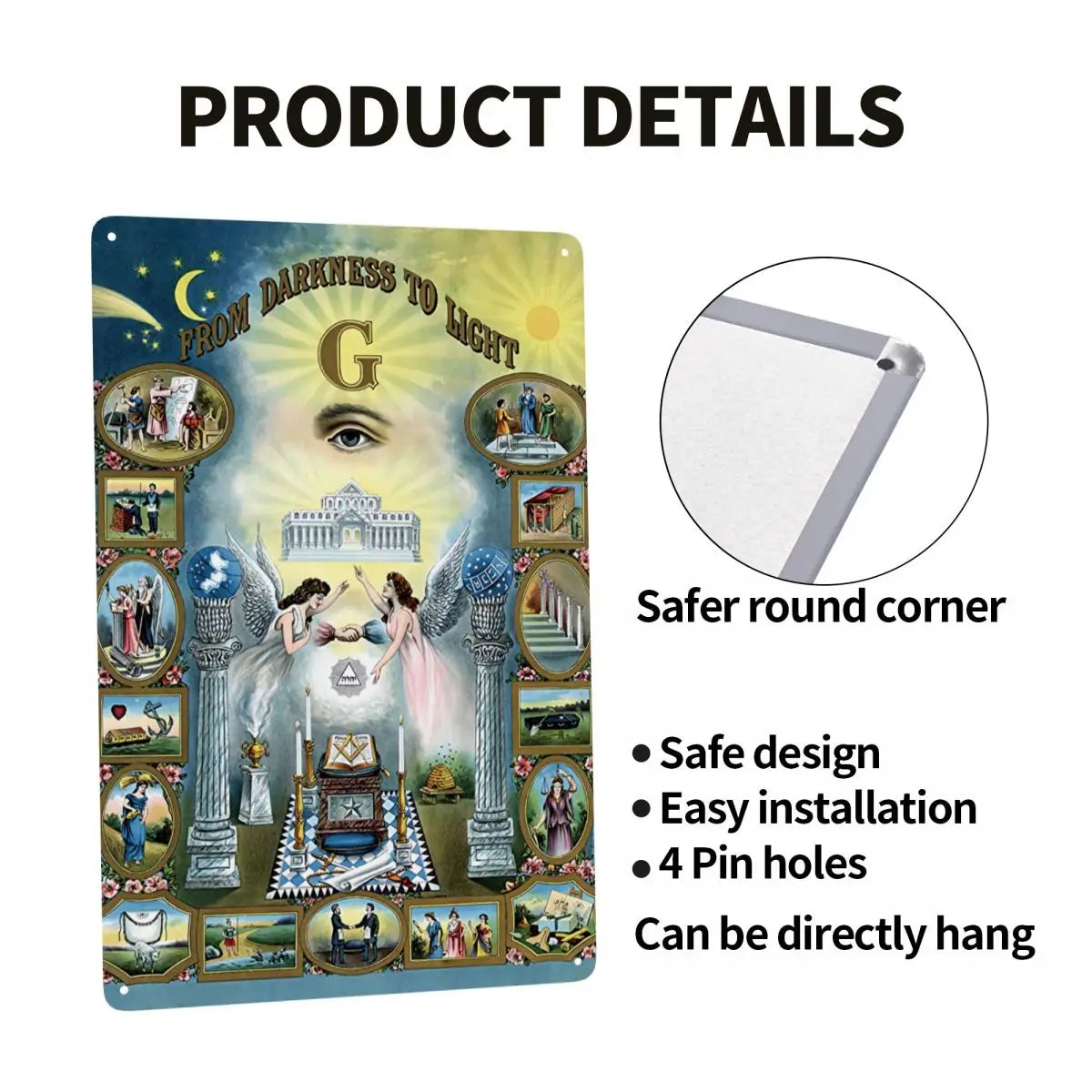 Illuminate your space with the profound symbolism of the Knights Templar Commandery Canvas, featuring the "Darkness to Light" Freemasonry theme. This canvas is enhanced by an intricately designed metal sign plaque, adding a striking dimensionality to the artwork. The combination of canvas and metal creates a powerful visual representation of the journey from darkness to enlightenment, a cornerstone of Masonic tradition. Ideal for lodge decor, offices, or personal collections.