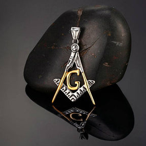 Retro Stainless Steel Square and Compass Masonic Pendant Necklace