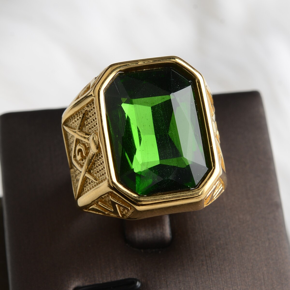 Master Mason Blue Lodge Ring - Stainless Steel With Various Stone Colors - Bricks Masons