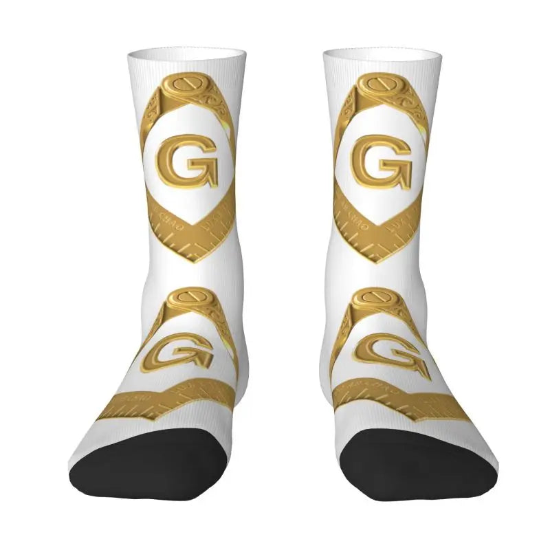 Master Mason Blue Lodge Sock - White & Gold Square and Compass G