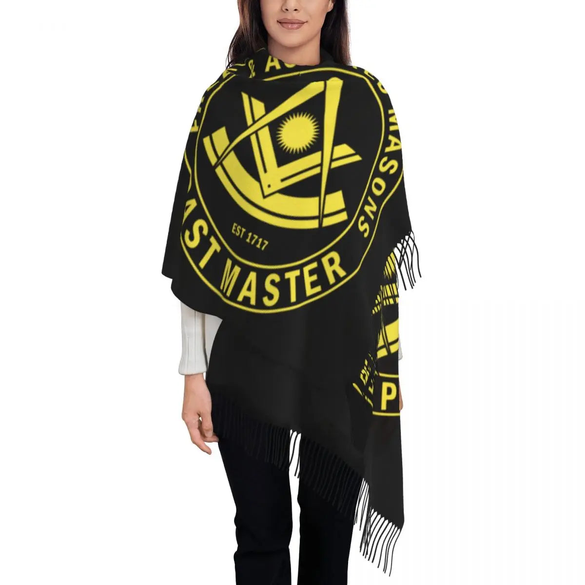 Enhance your wardrobe with our elegant Master Mason Blue Lodge Scarf, a perfect blend of style and symbolism. Crafted from soft, high-quality polyester, this scarf is designed to provide both comfort and durability. Featuring a tasteful print and adorned with tassels, it serves as a versatile accessory that can be worn as a shawl or wrap. The sophisticated pattern makes it an ideal choice for lodge events or casual outings, allowing you to showcase your Masonic pride with grace and distinction.